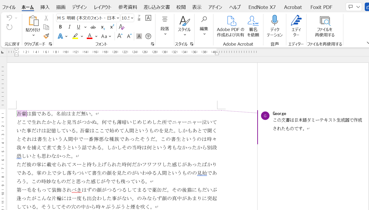 Wordにコメントをつけると下図のようにコメントを入れた人の名前が入ります。今回は仕事での必要に迫られて、このコメントの名前を変更もしくは削除するWebサービスを作成してみたのでご紹介します。