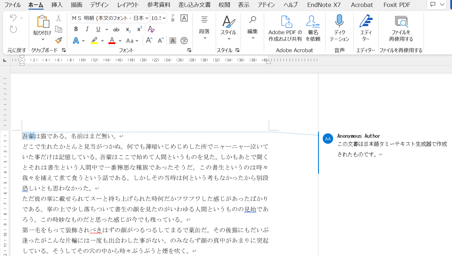 ページ中ほどに「作者名」を入力する欄があります。デフォルトで作者名を「Anonymous Author」に変更するようになっていますが、この入力欄に変更したい名前を入力すれば、Wordファイルのコメントの作者名がその名前に変わるようになっています。