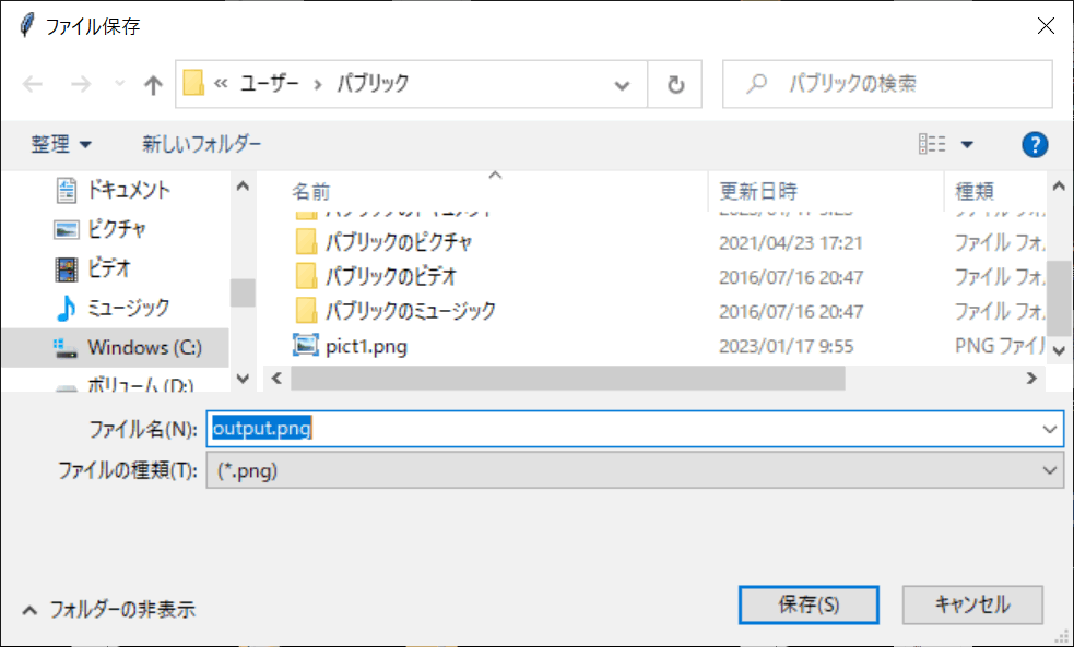 トラックバーを調整して、透過させる領域を決定したら、トラックバーダイアログ上でキーボードの「s」ボタンを押してください。するとファイルを保存するダイアログが開くので、透過処理をした画像ファイルを保存します。